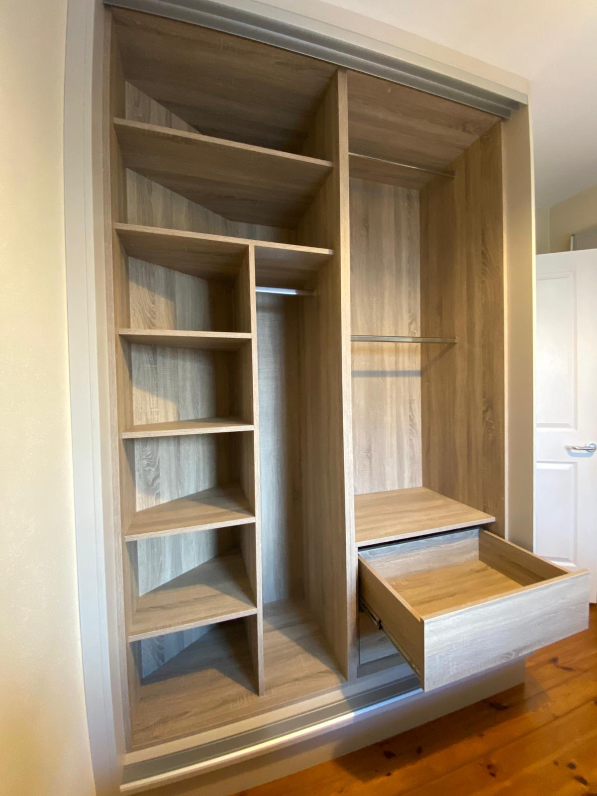 Made-to-measure wardrobes and fitted storage solutions designed to bring order, clarity, and balance to your space. Internal layouts are tailored to individual needs, while external finishes are kept clean and considered. The result is storage that feels integrated, functional, and quietly elegant.
